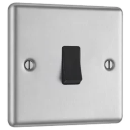 Brushed stainless steel switch with integral moisture protection gasket.