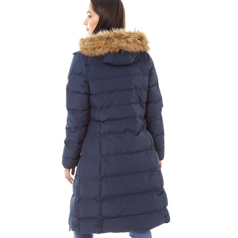 Trespass Womens Audrey Waterproof Padded Hooded Long Jacket Navy