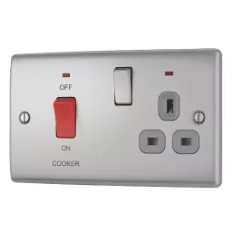 Slim profile 45A cooker switch and 13A switched socket with anti-fingerprint coating.